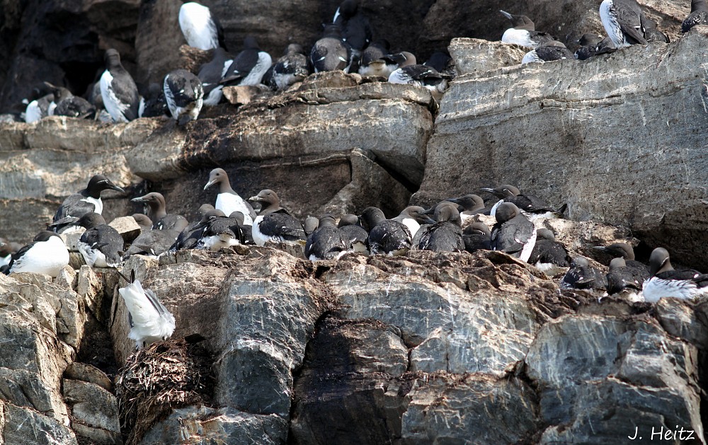| 2015-05-20 - Hornoya (Norvège) - Jaire, Phil, Gilou, Manu Bergeronnette grise (2), Cormoran huppé (30), Eider à duvet (3), Grand Corbeau (1), Guillemot de Brünnich (20), Guillemot de Troïl (7000), Hirondelle rustique (3), Macareux moine (30), Mouette tridactyle (50), Petit Pingouin (1000), Pipit farlouse (7), Traquet motteux (2) Estimation du nombre de guillemot de Troïl et petit pingouin fournie par le guide. Le nombre de macareux et de guillemot de Brunich correspond au nombre d'individus que nous avons vu ce jour là.