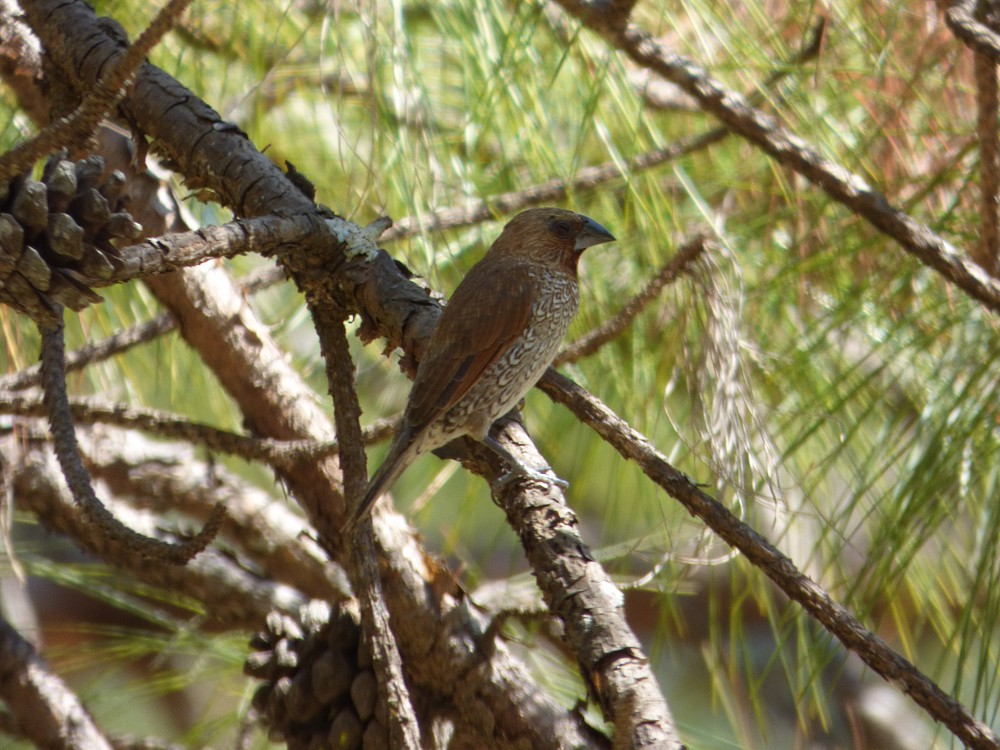 | 2017-02-01 - Kalaw Pine Hill Resort (Myanmar) - Phil, jlh Bergeronnette grise (2), Bulbul à ventre rouge (10), Bulbul orphée (5), Capucin damier (15), Mésange montagnarde (1), Moineau friquet (10), Pie-grièche à dos marron (1), Pie-grièche du Tibet (1), Pipit rosé (1), Pouillot à grands sourcils (1), Tarier gris (1), Tarier pie (2), Tourterelle tigrine (1), Verdier d'Oustalet (1) A peine arrivé à Kalaw, déjà de nouvelles espèces identifiées. Nous avons fait le tour de l'hôtel dans un paysage ouvert et arboré de pin. |