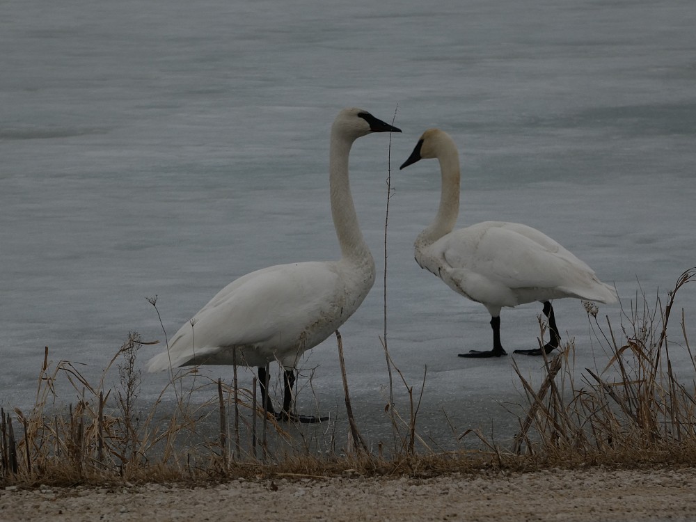 | 2021-03-13 - North End of Horicon Marsh, Hwy 49, Dodge County, Wisconsin (NA) - tonyr Bernache du Canada (16), Canard colvert (2), Cygne trompette (4), Foulque d'Amérique (2), Garrot à oeil d'or (8), Goéland à bec cerclé (16), Goéland argenté (2) Part of marsh still has ice and drive thru was closed road |