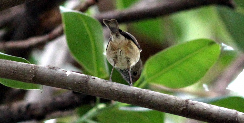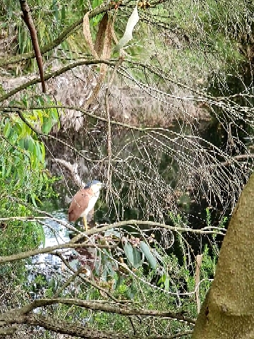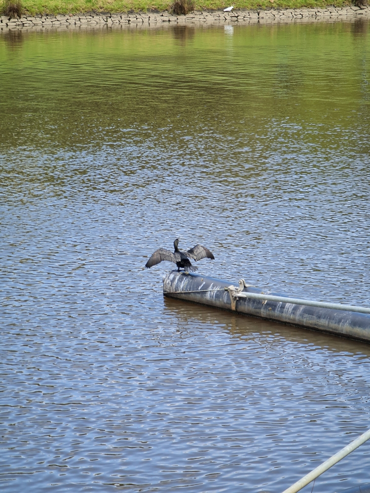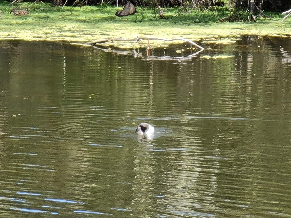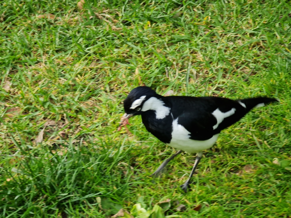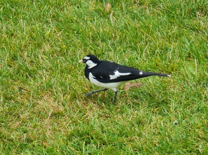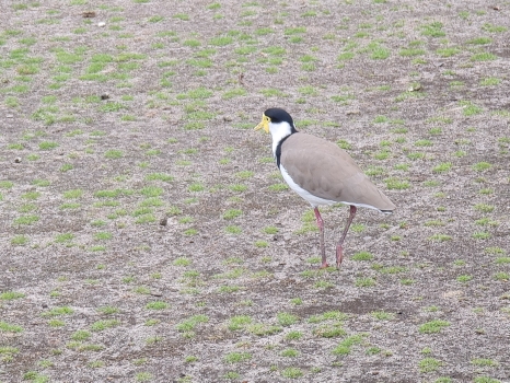 | 2018-04-12 - Royal Botanic Gardens Melbourne (Australie) - rdg Bihoreau cannelle (1), Canard à crinière (2), Canard à sourcils (3), Cormoran pie (2), Fuligule de Nouvelle-Zélande (2), Gralline pie (2), Martin triste (3), Méliphage à pendeloques (1), Méliphage bruyant (1), Vanneau soldat (2) Gralline pie femelle |