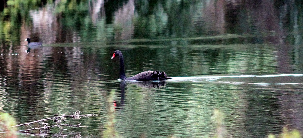 | 2020-10-20 - Royal Botanic Gardens Melbourne (Australie) - AndyandMeg Bihoreau cannelle (1), Canard à crinière (12), Canard à sourcils (12), Cygne noir (2), Foulque macroule (3), Gallinule sombre (6), Grand Cormoran (1), Méliphage à gouttelettes (4), Méliphage barbe-rouge (4), Merle noir (3), Petit Corbeau (1), Rhipidure gris (1), Talève sultane (4) |