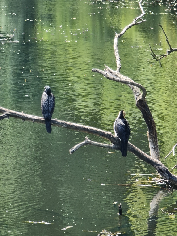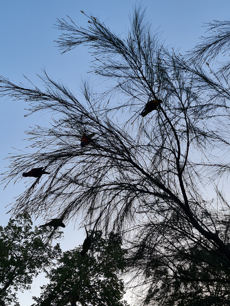 | 2020-11-01 - Royal Botanic Gardens Melbourne (Australie) - AndyandMeg Cacatoès à huppe jaune (5), Canard à crinière (20), Canard à sourcils (10), Cormoran noir (3), Cormoran pie (1), Cygne noir (2), Foulque macroule (4), Gallinule sombre (7), Gralline pie (4), Hirondelle messagère (4), Loriquet à tête bleue (36), Martin triste (16), Méliphage à gouttelettes (2), Méliphage à sourcils noirs (4), Méliphage barbe-rouge (8), Méliphage bruyant (3), Merle noir (3), Mouette argentée (8), Petit Corbeau (4), Pigeon biset (2), Rhipidure hochequeue (4), Rousserolle d'Australie (1), Sarcelle rousse (4), Talève sultane (12), Tourterelle tigrine (6) 1 hr punt ride around the lakes with Wesley. love warm sunny evening |