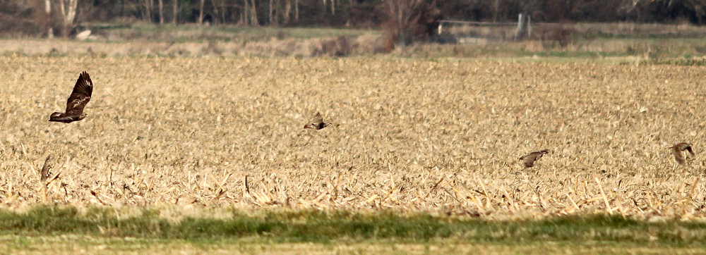 | 2017-09-03 - Cintegabelle (フランス) - Jaire アオサギ (5), カンムリカイツブリ (3), コウライキジ (9), チョウゲンボウ (2), ニシアマサギ (10), ノスリ (1), ヨーロッパアオゲラ (1), ヨーロッパチュウヒ (1) Le busard des roseaux part à l'assaut des faisans avant de se raviser... sans doute à cause du nombre |