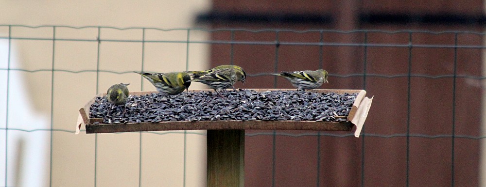 | 2018-02-27 - Cintegabelle (フランス) - Jaire アオカワラヒワ (5), ゴシキヒワ (15), シジュウカラの子育て (1), シメ (5), シラコバト (2), ズアオアトリ (2), マヒワ (15) Ce matin à la mangeoire. Les gros bec sont toujours présents |