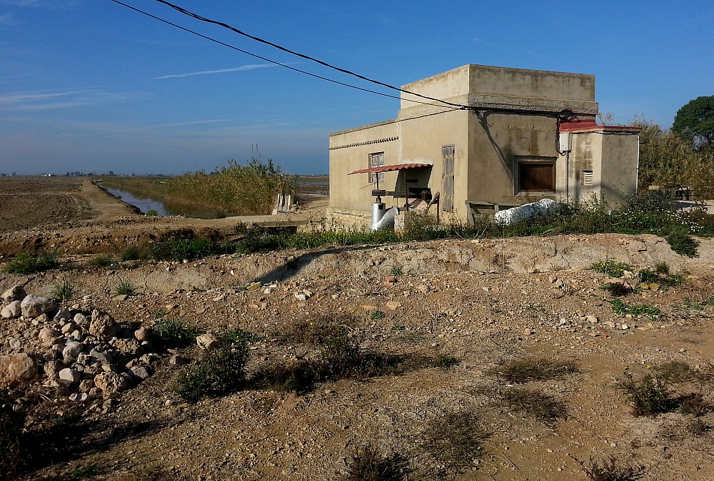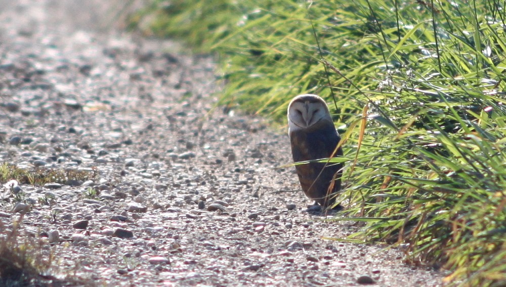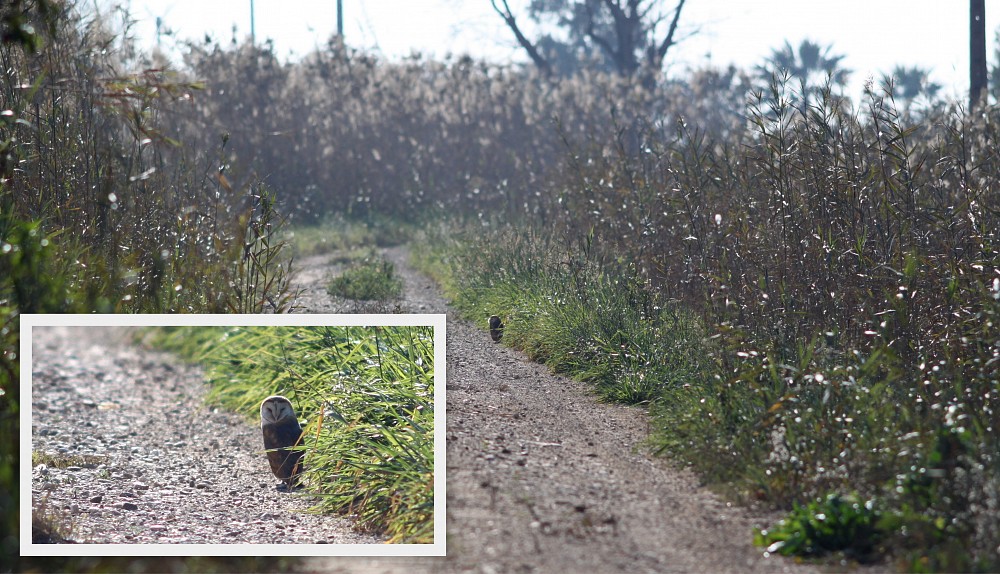 | 2015-12-27 - Rodell de les Formigues (Spania) - Jaire, jlh, Phil, Gilou Avosett (50), Bronseibis (50), Cettisanger (1), Egretthegre (5), Gråhegre (5), Gransanger (5), Isfugl (1), Rosenflamingo (100), Rødstrupe (2), Sivhauk (2), Splitterne (2), Strandsnipe (1), Tårnugle (1), Tyrkerdue (20) Après quelques km de piste ... l'observatoire se trouve de l'autre côté du canal... mais belle surprise avec une effraie qui passe la journée au bord du chemin |