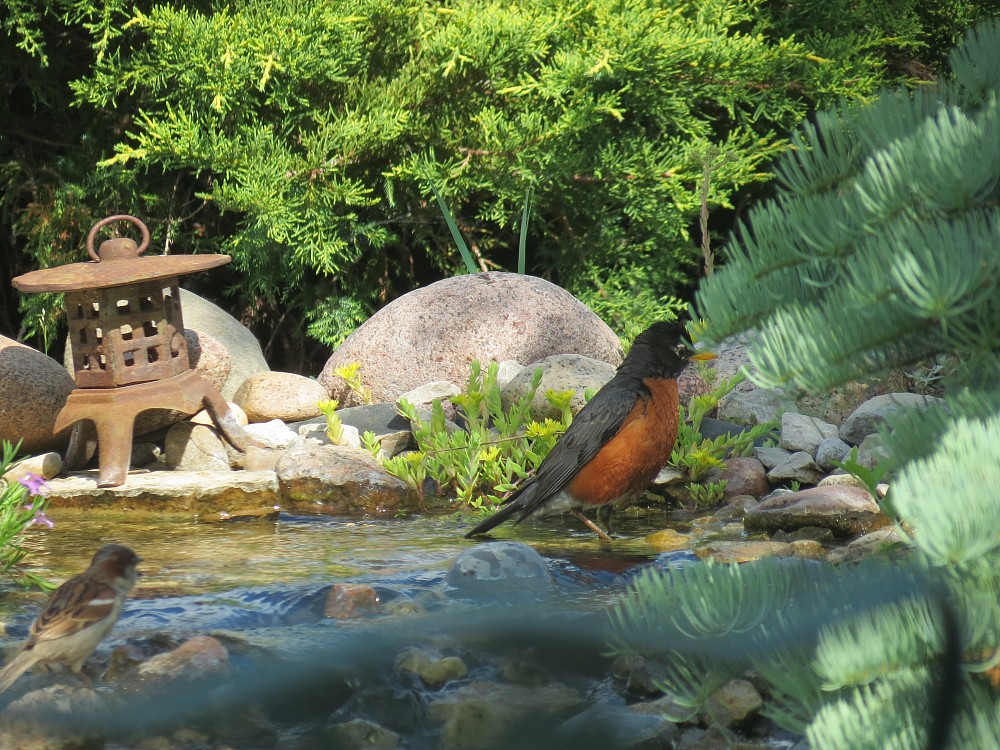 | 2021-05-18 - 7558 jills court, Washington County, Wisconsin, United States (NA) - tonyr Американский чиж (4), Восточная сиалия (1), Индиговый овсянковый кардинал (1), Каролинский меланерпес (1), Красно-чёрная пиранга (1), Мексиканская чечевица (2), Плачущая горлица (1) bathing and drinking in waterfall stream |