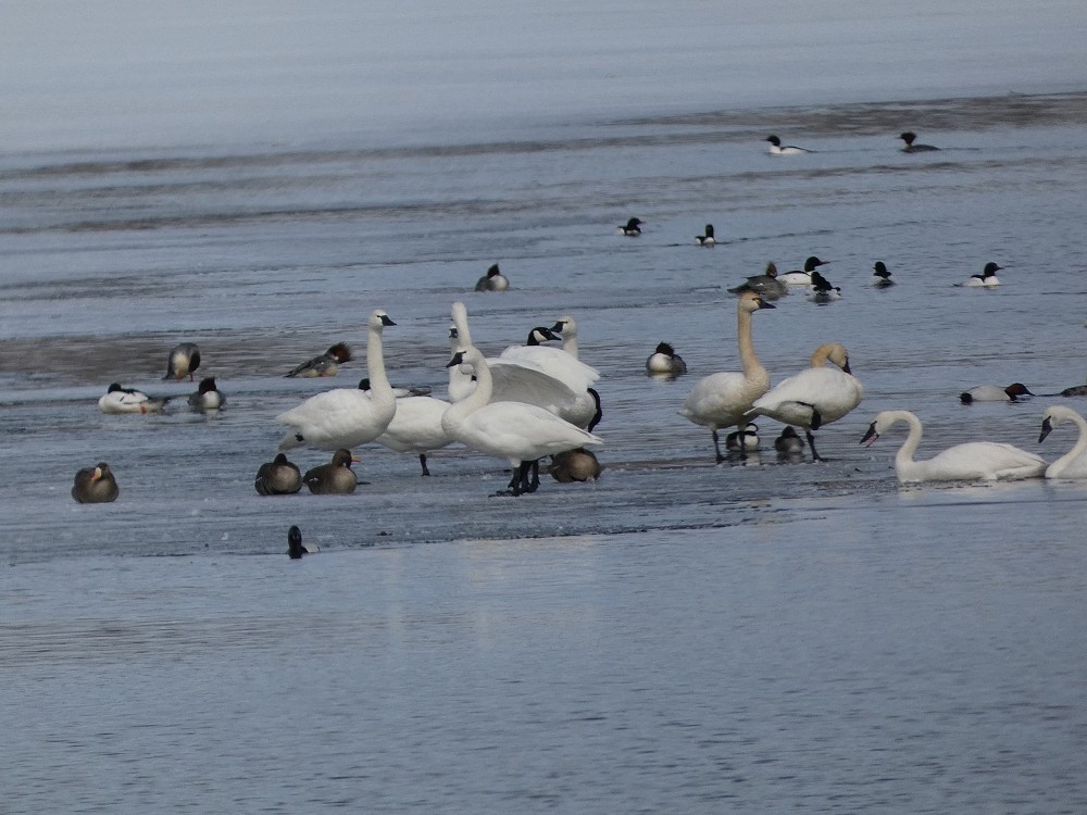 | 2023-03-27 - Minnesota Hwy 12, Wells Lake Bridge Area, Faribault MN, USA (NA) - tonyr Американская лысуха (8), Американский ворон (3), Американский красноголовый нырок (4), Американский лебедь (2), Большой крохаль (8), Гоголь-головастик (3), Канадская казарка (24), Кольчатый нырок (6), Красный кардинал (1), Кряква (12), Лебедь-трубач (6) |
