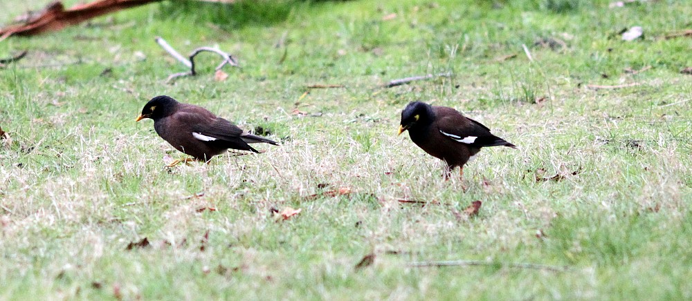 | 2018-04-12 - Royal Botanic Gardens Melbourne (澳大利亚) - rdg 太平洋黑鸭 (3), 家八哥 (3), 小斑鸬鹚 (2), 新西兰潜鸭 (2), 棕夜鹭 (1), 白颈麦鸡 (2), 鬃林鸭 (2), 鹊鹩 (2), 黄垂蜜鸟 (1), 黑额矿吸蜜鸟 (1) Gralline pie femelle |