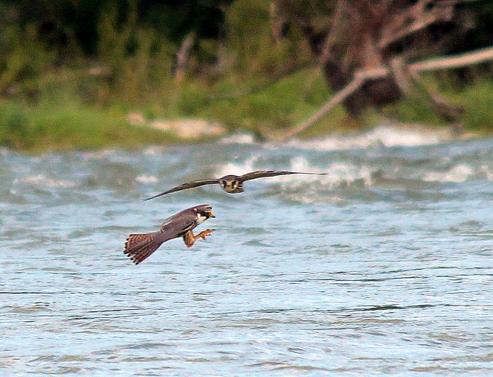 | 2013-05-25 - Portet sur garonne (Frankreich) - Manu Baumfalke (4), Eisvogel (1), Mauersegler (300), Mäusebussard (1), Mehlschwalbe (200), Mönchsgrasmücke (1), Rauchschwalbe (30), Ringeltaube (300), Schwarzmilan (5), Seidenreiher (3), Zwergadler (6) Couple d'aigle botté en parade au niveau du confluent ariège garonne |