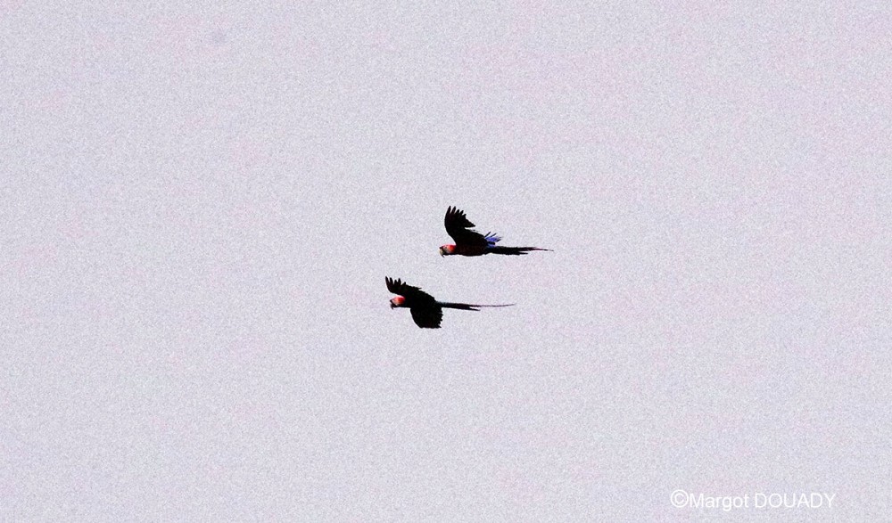 | 2014-07-29 - Route de Kaw, Guyane française (French Guiana) - DOUADY Black-collared Hawk (2), Channel-billed Toucan (2), Great Kiskadee (3), Green Aracari (2), King Vulture (1), Long-billed Hermit (1), Palm Tanager (4), Scarlet Macaw (6), Swallow-tailed Kite (5) |