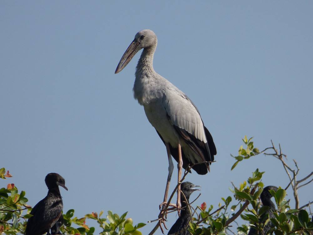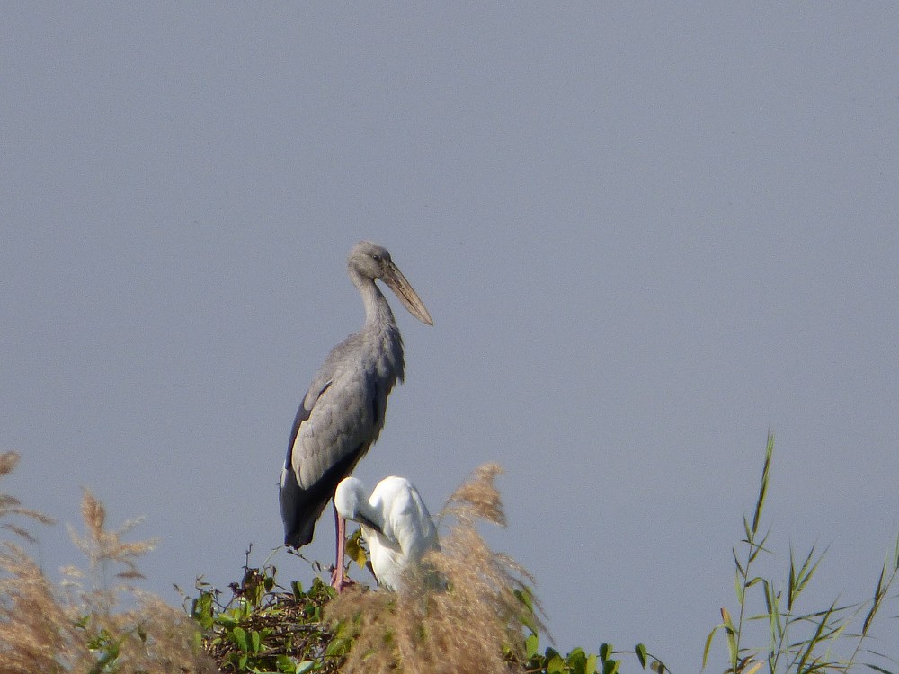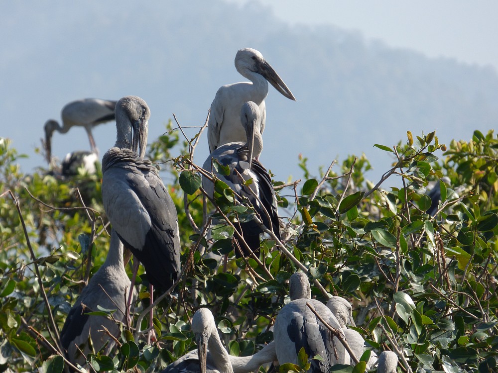 | 2017-01-27 - Lac Inle. Golden island cottage. (Myanmar) - Phil, jlh Aigrette garzette (1), Bec-ouvert indien (500), Bergeronnette grise (1), Bihoreau gris (1), Capucin damier (1), Héron intermédiaire (15), Héron pourpré (2), Hirondelle à longs brins (2), Ibis falcinelle (1), Moineau friquet (1), Pie-grièche à dos marron (1), Shama dayal (5) Le guide nous conduit au bord d'une héronière oú niche 500 becs ouverts indiens juste à coté du Garden Island cottage. Il y a foule dans les arbres et ça piaille à qui mieux mieux. La nidification a commencé et quelques jeunes occupent les nids. Sur le chemin nous croisons l'hirondelle à long brins occupée à construire son nid également. Magnifique. |