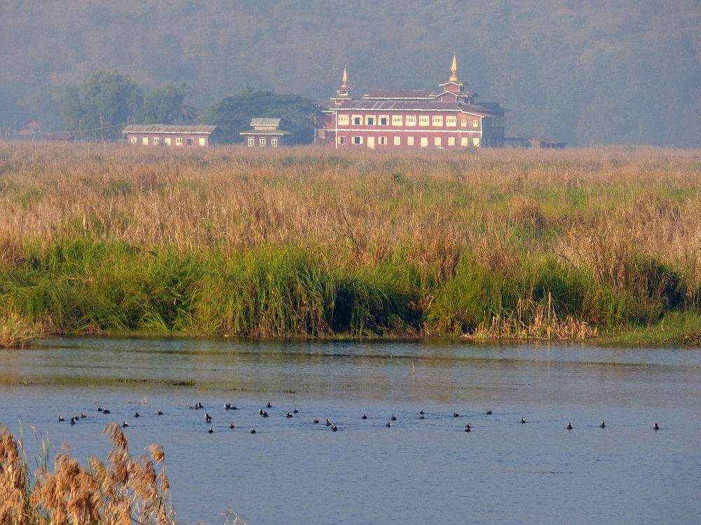 | 2017-01-23 - Inle princess (Myanmar) - Phil, jlh (1), Bulbul à tête noire (1), Busard d'Orient (1), Cormoran de Vieillot (1), Crabier chinois (15), Drongo royal (1), Jacana à longue queue (3), Martin-chasseur de Smyrne (1) A peine arrivė au Inle princess. Depuis le balcon de la chambre vue sur le petit lac. Les expé s'annoncent bien. Le busard est peut être 1 busard d'orient. Plein d'hirondelle difficile à identifier. |