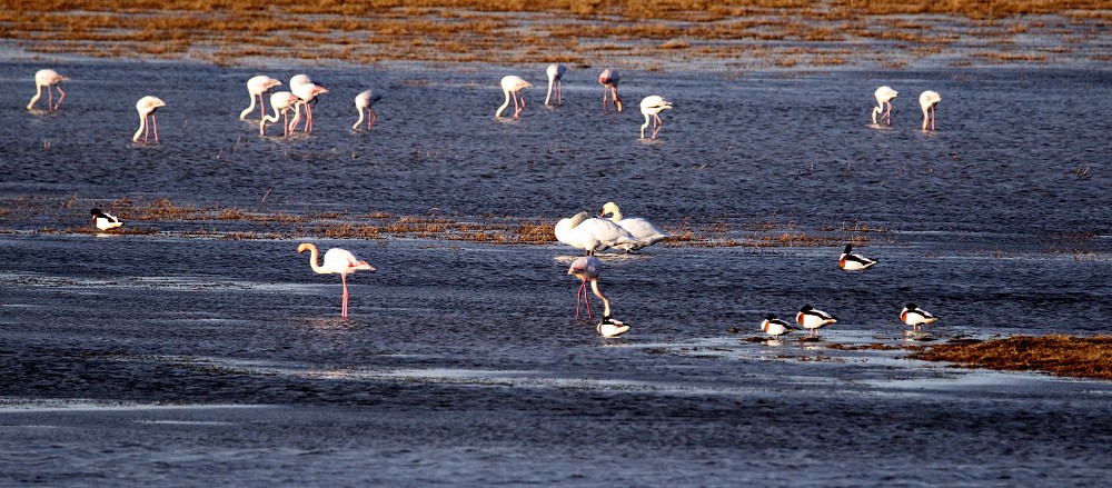 | 2017-12-27 - Mas d'Anglas (France) - Jaire, jlh, Phil Aigle botté (1), Bergeronnette grise (3), Cygne tuberculé (2), Flamant rose (30), Grand Cormoran (1), Héron cendré (1), Tadorne de Belon (30) |