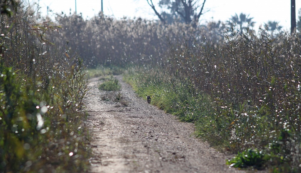 | 2015-12-27 - Rodell de les Formigues (Spania) - Jaire, jlh, Phil, Gilou Avosett (50), Bronseibis (50), Cettisanger (1), Egretthegre (5), Gråhegre (5), Gransanger (5), Isfugl (1), Rosenflamingo (100), Rødstrupe (2), Sivhauk (2), Splitterne (2), Strandsnipe (1), Tårnugle (1), Tyrkerdue (20) Après quelques km de piste ... l'observatoire se trouve de l'autre côté du canal... mais belle surprise avec une effraie qui passe la journée au bord du chemin |