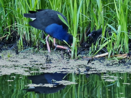| 2020-10-17 - Royal Botanic Gardens Melbourne (澳大利亚) - AndyandMeg 原鸽 (20), 太平洋黑鸭 (12), 家八哥 (30), 小斑鸬鹚 (1), 小渡鸦 (3), 小黑鸬鹚 (2), 斑噪钟鹊 (2), 普通鸬鹚 (3), 暗色水鸡 (12), 椰果彩虹鹦鹉 (24), 澳洲红嘴鸥 (12), 灰颊垂蜜鸟 (4), 珠颈斑鸠 (6), 白眉丝刺莺 (2), 矿吸蜜鸟 (2), 紫水鸡 (12), 红垂蜜鸟 (12), 葵花鹦鹉 (3), 迎燕 (2), 长嘴凤头鹦鹉 (1), 骨顶鸡 (6), 鬃林鸭 (20), 鹊鹩 (4), 黑天鹅 (2), 黑背钟鹊 (6), 黑额矿吸蜜鸟 (12) Warm sunny day after morning rain, gardens busy and birthday picnic lunch with Pegg. Swamphen with chicks that had just hatched, two separate nests with 4 chicks each. |