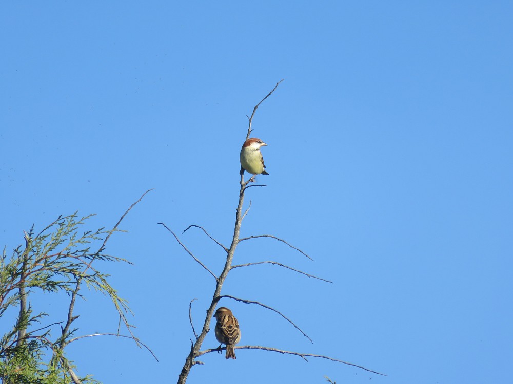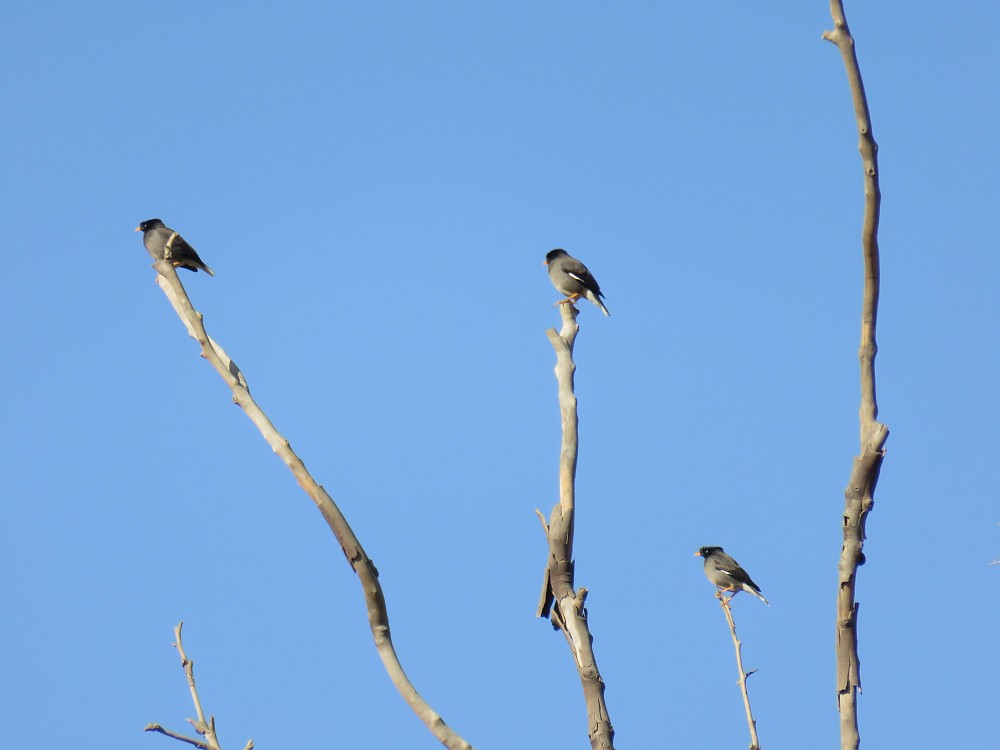 | 2018-12-03 - Amaravati, Andhra Pradesh, India (印度) - SK 南灰伯劳 (1), 印度金黄鹂 (1), 棕斑鸠 (1), 棕胸佛法僧 (5), 灰鸫鹛 (2), 白胸翡翠 (1), 粉红椋鸟 (100), 西方牛背鹭 (10), 黑喉红臀鹎 (5) |