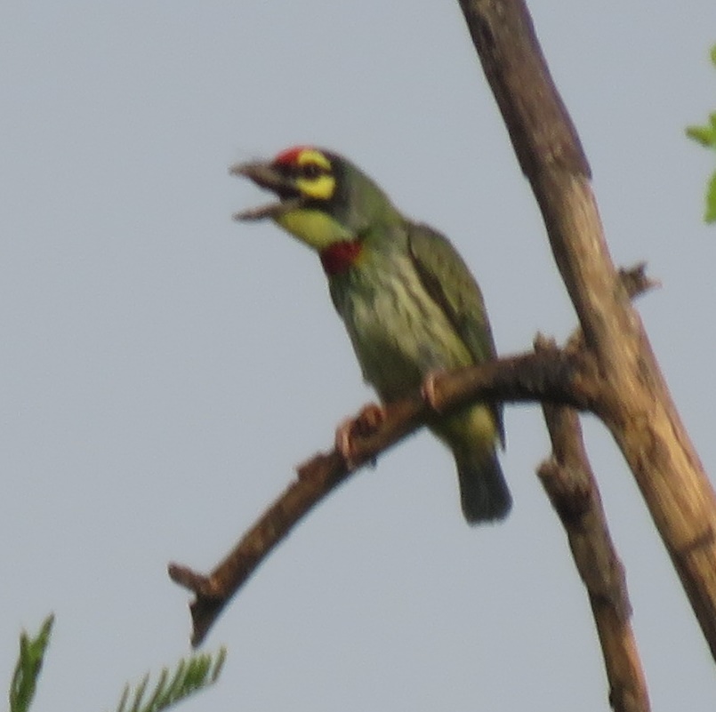 | 2018-04-20 - Valley School, Bengaluru (印度) - SK 家八哥 (5), 小绿拟鴷 (1), 灰山鹪莺 (1), 灰腹绣眼鸟 (2), 珠颈斑鸠 (1), 紫色花蜜鸟 (2), 红耳鹎 (2), 红领绿鹦鹉 (2), 绿喉蜂虎 (2), 蓝孔雀 (8), 赤胸拟啄木鸟 (2), 鹊鸲 (1), 黑喉红臀鹎 (2) |