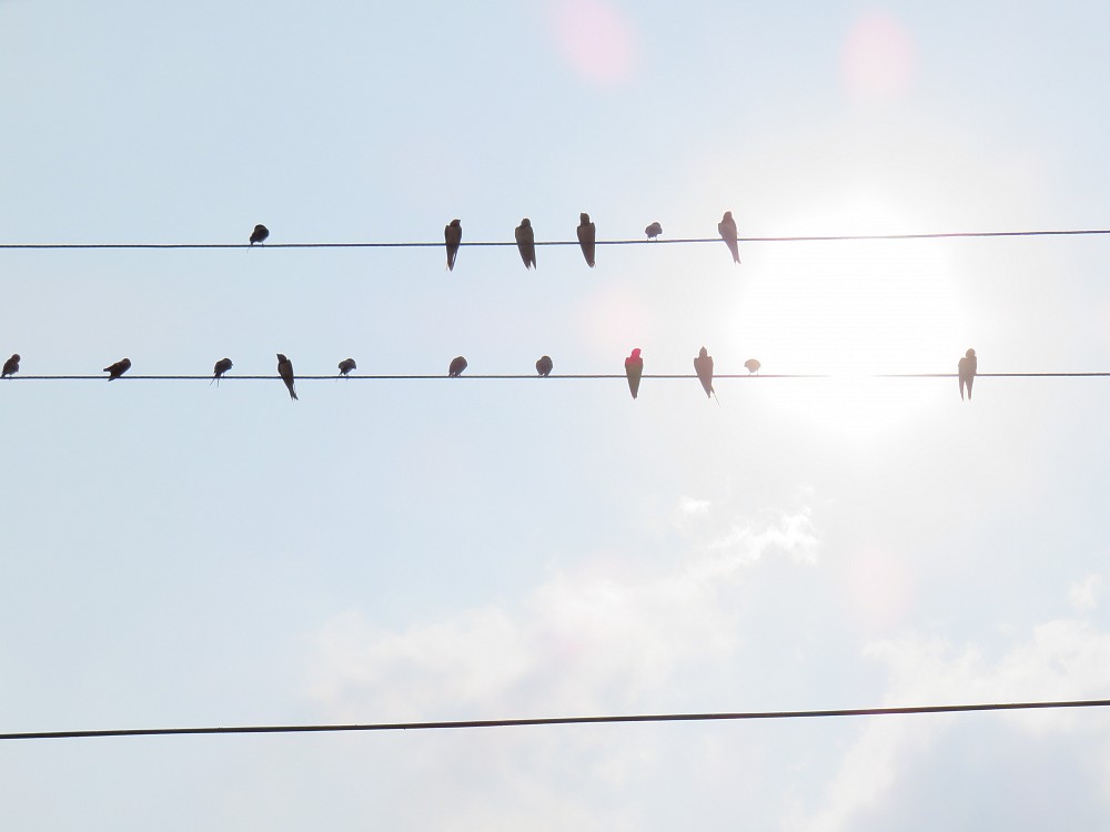 | 2018-10-13 - Hoskote Lake, Bangalore, Karnataka, India (印度) - SK 印度池鹭 (1), 印度鸲 (1), 大斑鹡鸰 (1), 家燕 (10), 斑嘴鹈鹕 (5), 普通鸬鹚 (6), 灰山鹪莺 (1), 珠颈斑鸠 (1), 白胸翡翠 (1), 骨顶鸡 (5), 黄胸织雀 (3), 黑卷尾 (1), 黑头文鸟 (5) |