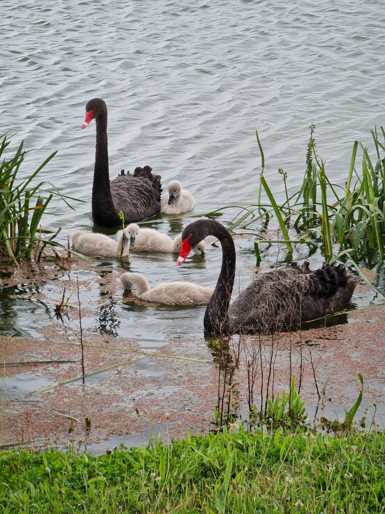 | 2020-10-17 - Royal Botanic Gardens Melbourne (澳大利亚) - AndyandMeg 原鸽 (20), 太平洋黑鸭 (12), 家八哥 (30), 小斑鸬鹚 (1), 小渡鸦 (3), 小黑鸬鹚 (2), 斑噪钟鹊 (2), 普通鸬鹚 (3), 暗色水鸡 (12), 椰果彩虹鹦鹉 (24), 澳洲红嘴鸥 (12), 灰颊垂蜜鸟 (4), 珠颈斑鸠 (6), 白眉丝刺莺 (2), 矿吸蜜鸟 (2), 紫水鸡 (12), 红垂蜜鸟 (12), 葵花鹦鹉 (3), 迎燕 (2), 长嘴凤头鹦鹉 (1), 骨顶鸡 (6), 鬃林鸭 (20), 鹊鹩 (4), 黑天鹅 (2), 黑背钟鹊 (6), 黑额矿吸蜜鸟 (12) Warm sunny day after morning rain, gardens busy and birthday picnic lunch with Pegg. Swamphen with chicks that had just hatched, two separate nests with 4 chicks each. |