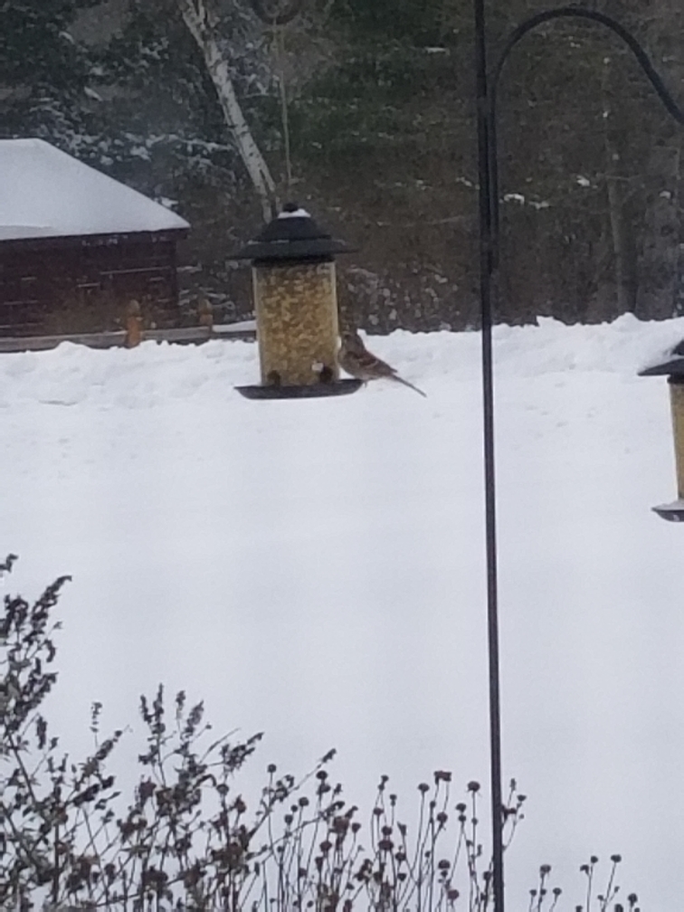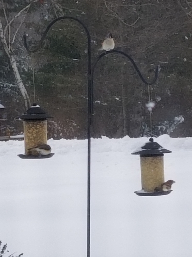 主红雀 (1), 冠蓝鸦 (3), 哀鸽 (15), 家麻雀 (5), 普通扑动鴷 (2), 灰蓝灯草鹀 (6), 紫翅椋鸟 (3), 绒啄木鸟 (1), 美洲凤头山雀 (3), 美洲树雀鹀 (2), 黑顶山雀 (1)